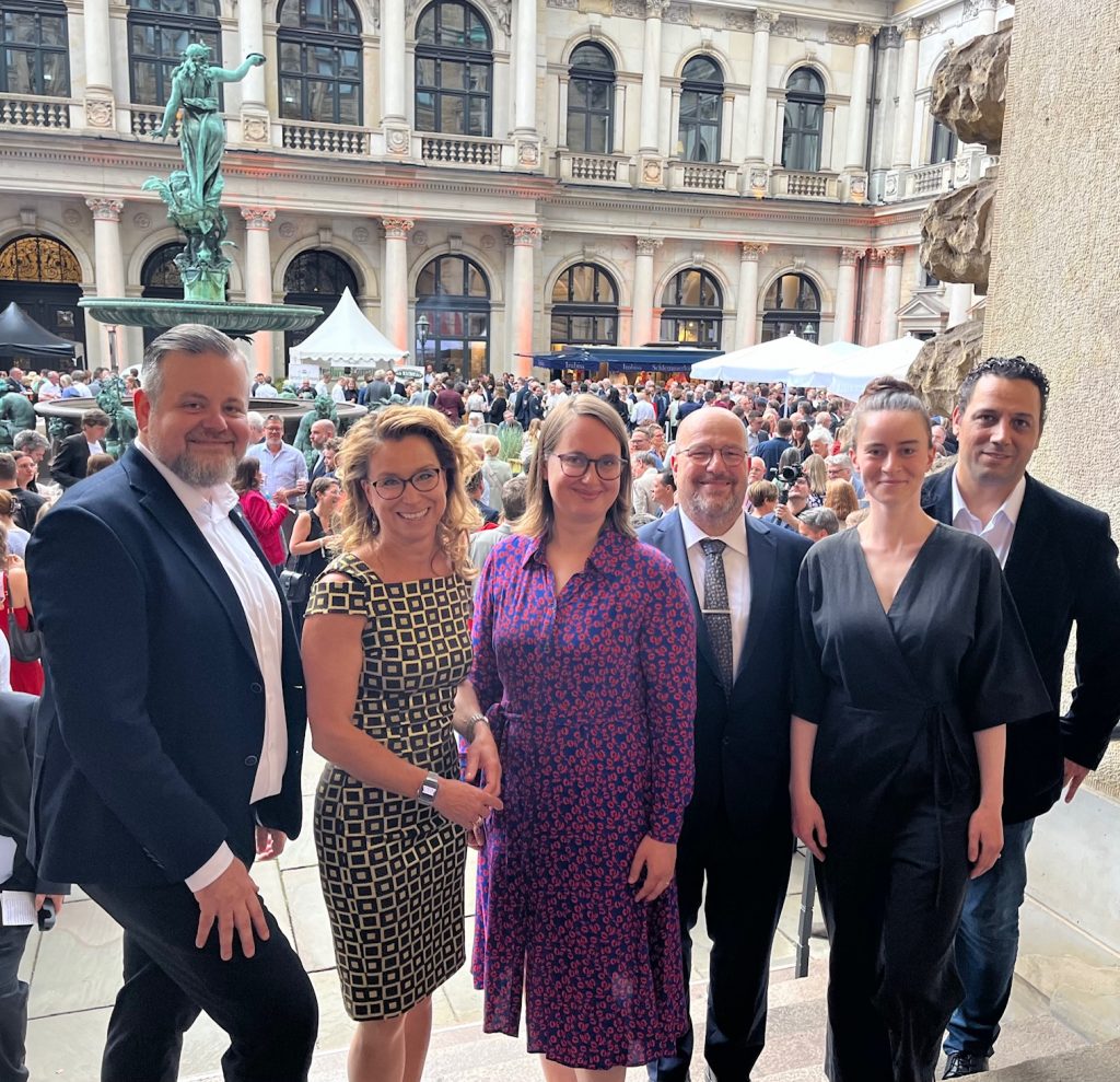 Hamburg Eyaleti Meclis Başkanı Carola Veit ve Başkan Yardımcıları, Hamburg Belediye Binası’nın iç avlusunda 27. Parlamento Yaz Festivali’nde başta siyaset, STK`lar ve iş dünyası olmak üzere farklı kesimlerden yaklaşık 1.200 misafir ağırladı.