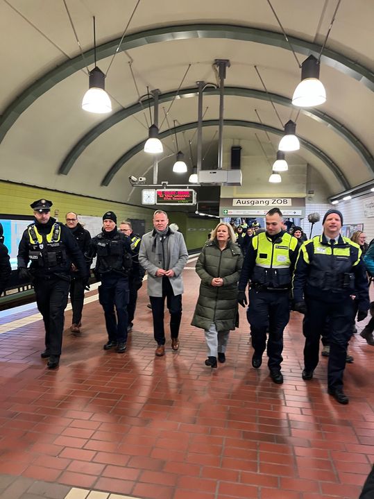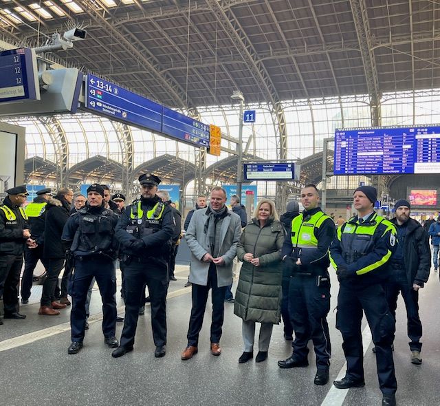 Bakan Faeser, Hamburg’daki ziyaretine Hamburg İçişleri Bakanı Andy Grote ile birlikte „Güvenli Merkez İstasyon İttifakı“ temsilcileriyle görüşerek başladı. 2023 baharından bu yana uygulanan “Quattro Devriyesi” sayesinde Hamburg Merkez Tren İstasyonu’nda şiddet olayları %25 azaldı. 2023 yılında 720 olan şiddet olayı, 2024’te 546’ya düştü. Ayrıca, silah ve alkol yasağı gibi ek önlemler de güvenlik seviyesini artırdı.