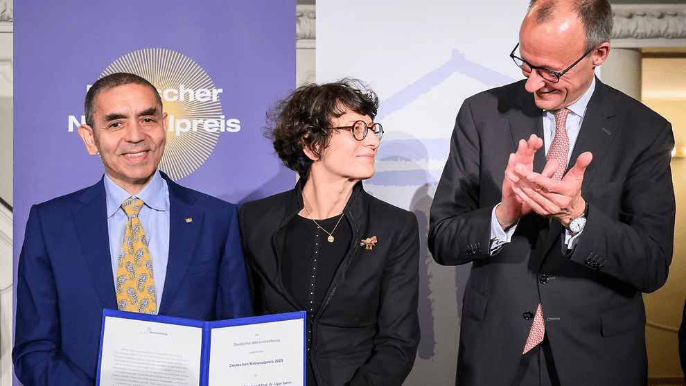 Almanya’da bilim ve demokrasiye katkı sunan kişi ve kurumlara verilen Alman Ulusal Ödülü (Deutscher Nationalpreis) bu yıl BioNTech kurucuları Özlem Türeci ve Uğur Şahin’e verildi. Törende konuşan Almanya Başbakanı Friedrich Merz, çiftin yalnızca COVID-19 aşısı ile milyonlarca hayatı kurtarmakla kalmadığını, aynı zamanda mRNA teknolojisi sayesinde kanser tedavisinde de çığır açtığını vurguladı.